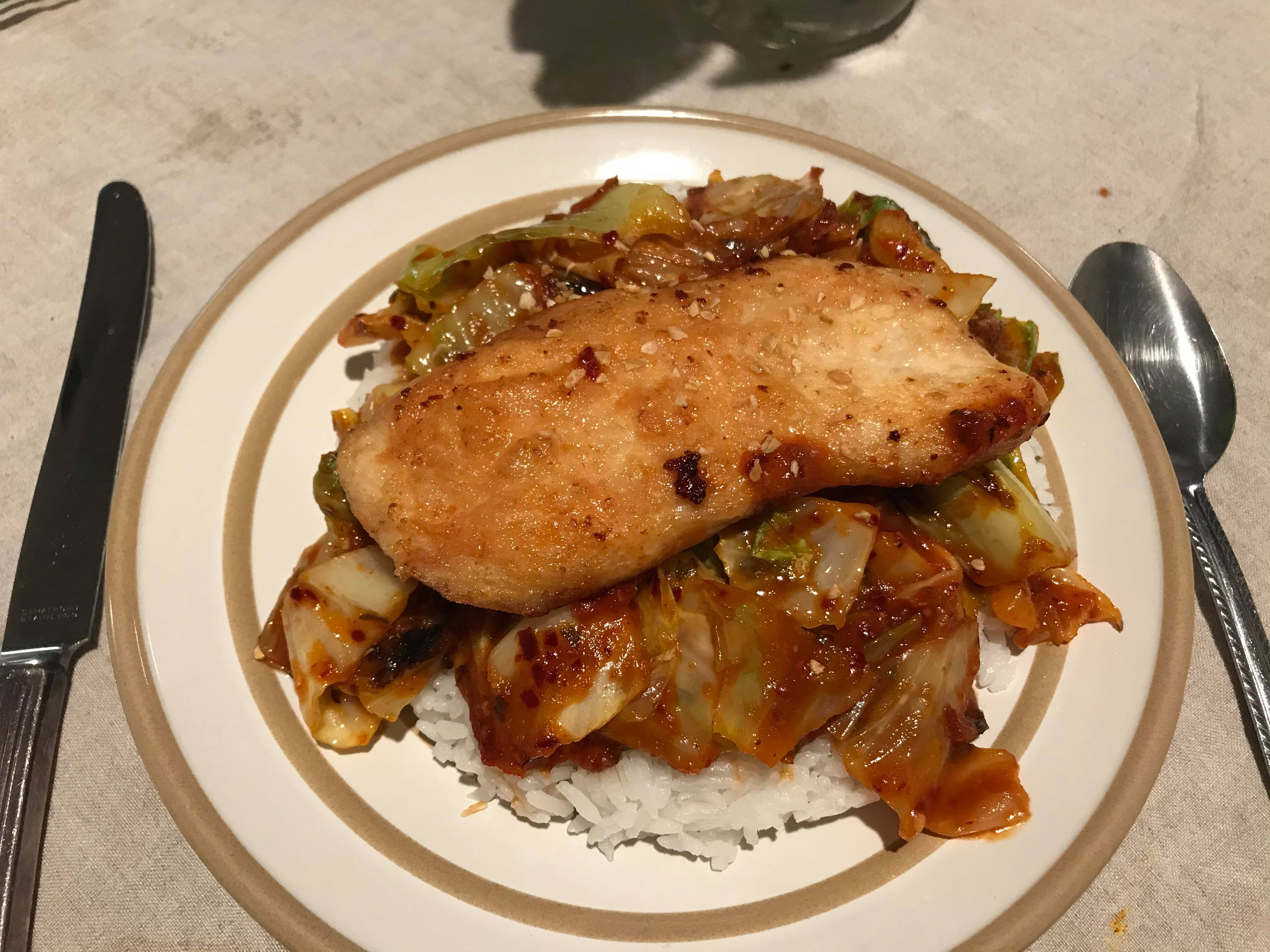 닭가슴살 튀김 스테이크 양념 덮밥이 완성되었습니다!