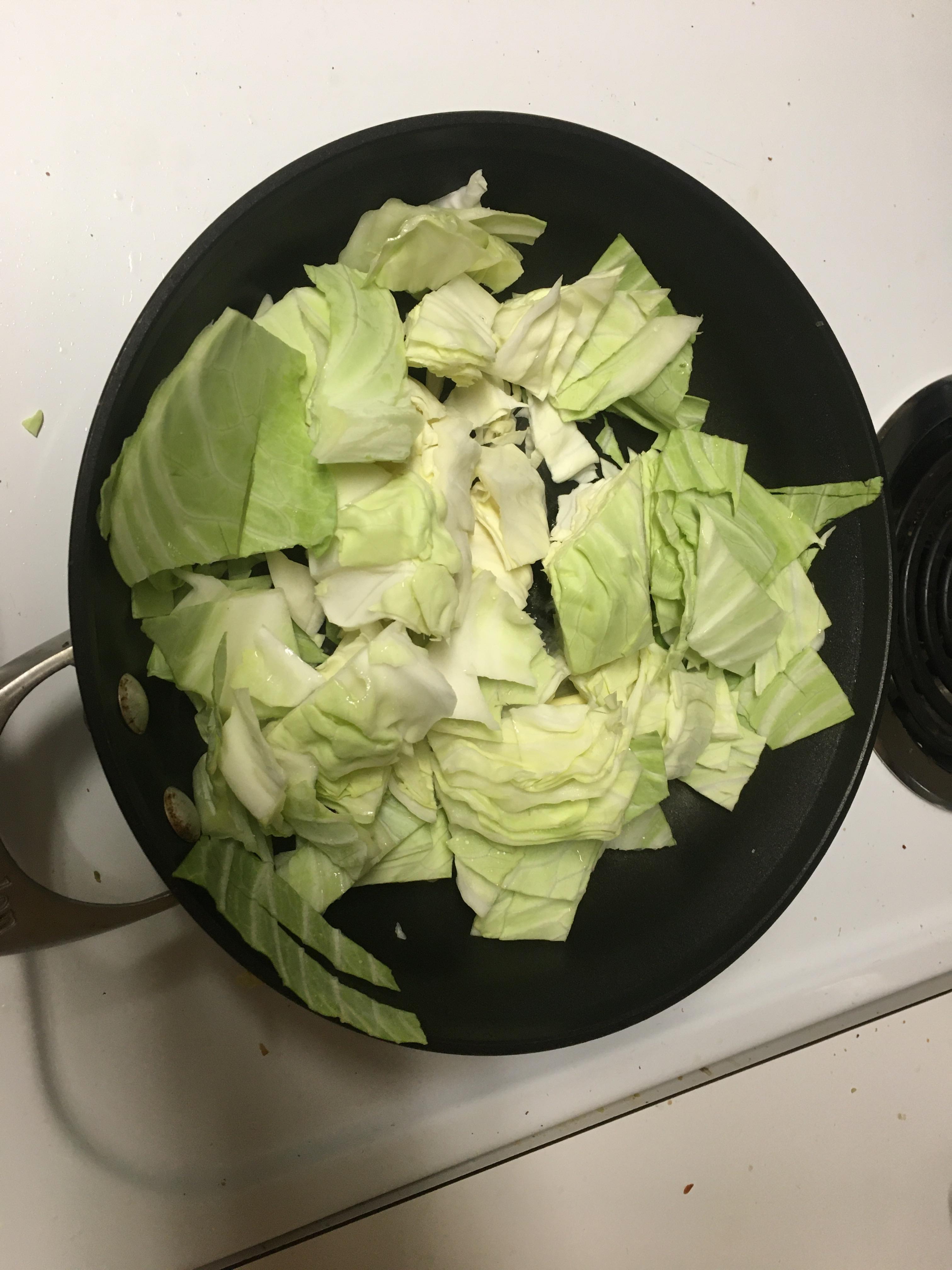 버터가 녹으면, 썰어두었던 양배추를 넣어주세요