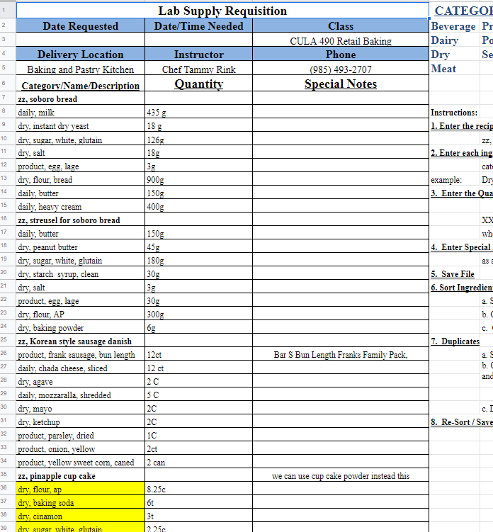 레시피 중 하나인 크림치즈 갈릭 데니쉬 레시피를 가져왔습니다. 엑셀을 좋아하시는 분이라면 저처럼 엑셀 판을 하나 완벽하게 만들어 놓으세요, 그러면 다음에 사용하실때 복사만 하셔서 쓰실 수 있습니다. 자신이 만들 양을 적으시고 그 수식에 따라 최종양을 알려주는 엑셀이면 더할나위 없이 좋습니다. 처음에는 전체적인 레시피를 만들어주세요